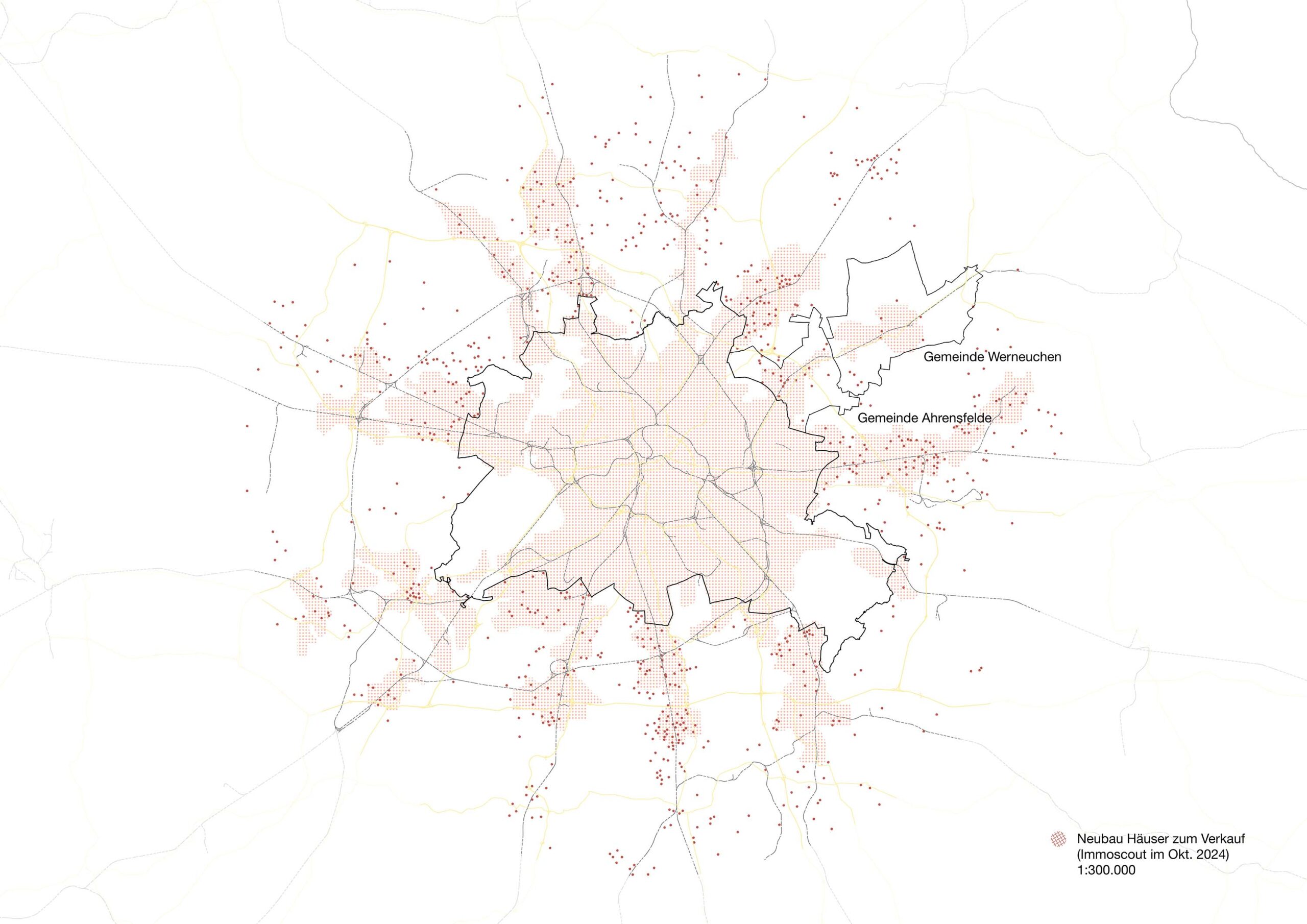 Berlin is growing and Ahrensfelde–Werneuchen is one of the development corridors identified in the so called Capital Region Development Plan (Landesentwicklungsplan Hauptstadtregion). Massive construction is taking place on the periphery, often outside of public discourse. Ahrensfelde, once a linear village, is expected to experience another wave of growth. But what might a more meaningful urban expansion look like here? And does the urban periphery hold specific spatial qualities that can be reflected in residential floor plans?