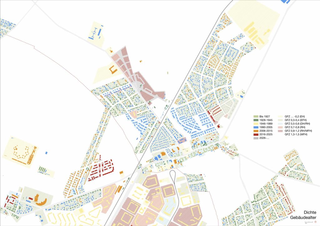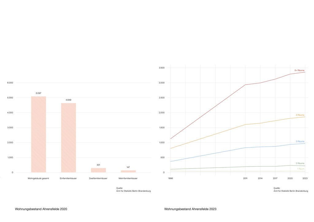 Ahrensfelde’s previous growth phases (1930s, 1990s) were closely linked to the dream of owning a family home with a garden. Today, more than 91% of the housing stock consists of single-family homes with five or more rooms. Other demographics find little to no suitable housing, and there are few alternatives that allow people to adapt their living situation to changes in their life course.