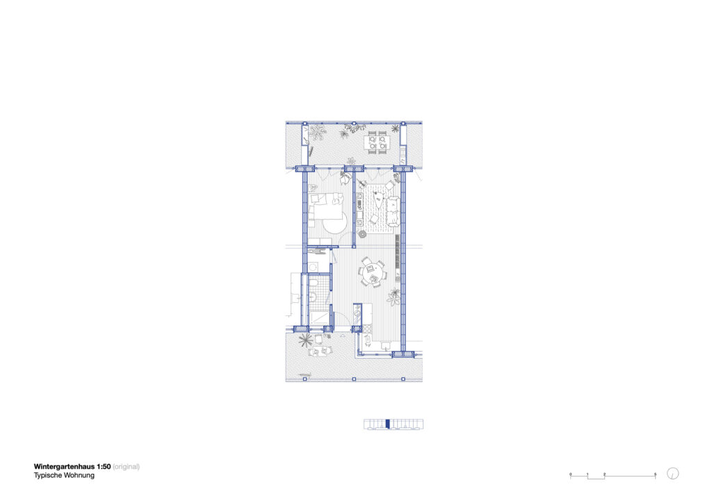 All buildings are designed in timber frame construction with load-bearing exterior walls and timber façades; only the base levels of the Winter Garden House and the Maisonette House are constructed using reinforced concrete, with the latter clad in lime sandstone.